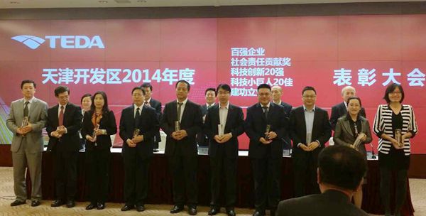5月11日,天津開發區2014年度“百強企業”、“科技創新單位”、“科技小巨人”、“社會責任貢獻獎”、“建功立業獎”等獎項頒獎大會在投資服務中心舉行。我校獲“2014年度天津開發區科技創新20強”榮譽稱號,這是我校首次獲得該項榮譽。副校長路福平參加表彰會并上臺領獎。